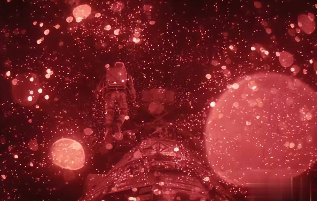 当画面转换为男主的红外视角,漆黑的太空中满是跃动的“噬星体”,成为一片流光溢彩的红色海洋。