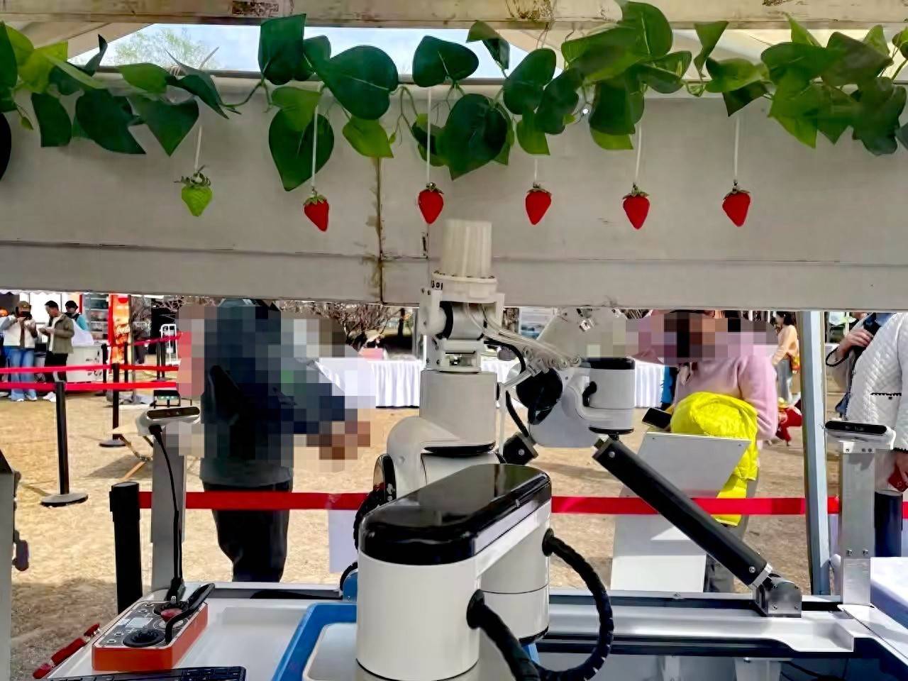 海淀公园“AI在海淀 燃动科普”现场展示的草莓采摘机器人。新京报记者 刘欢 摄